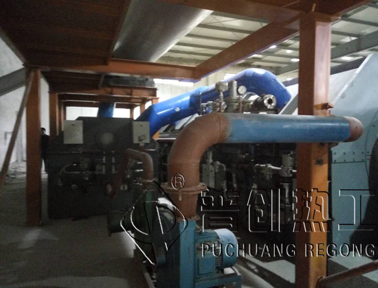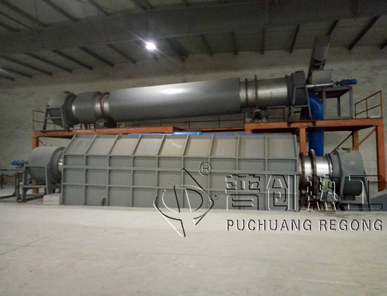 回轉(zhuǎn)爐的熱源來(lái)自電阻絲,本回轉(zhuǎn)爐采用筒體底部加熱方式。因此需要烘干的物料,從進(jìn)料箱、進(jìn)料溜進(jìn)入筒體,即被螺旋抄板推向后。由于回轉(zhuǎn)爐傾斜放置,物料一方面在重力和回轉(zhuǎn)作用下流向后端,另一方面物料被抄板反復(fù)抄起,帶至上端再不斷地?fù)P撒下來(lái),使物料在筒內(nèi)形成均勻的幕簾,充分與筒內(nèi)的熱氣流進(jìn)行熱交換,由于物料反復(fù)揚(yáng)撒,所含的水分逐漸被烘干,從而達(dá)到烘干的目的項(xiàng)目現(xiàn)場(chǎng)